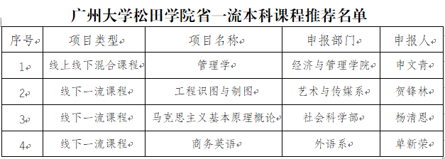 根据《广东省教育厅关于开展省一流本科课程遴选认定工作的通知》(粤教高函[2020] 7号)文件精神,我校开展了省一流本科课程遴选推荐工作。经课程负责人申报、部门推荐、教务处初审、校内专家网络评审和学校领导审批,决定上报《管理学》等四门课程参加广东省教育厅遴选认定,现予以公示。