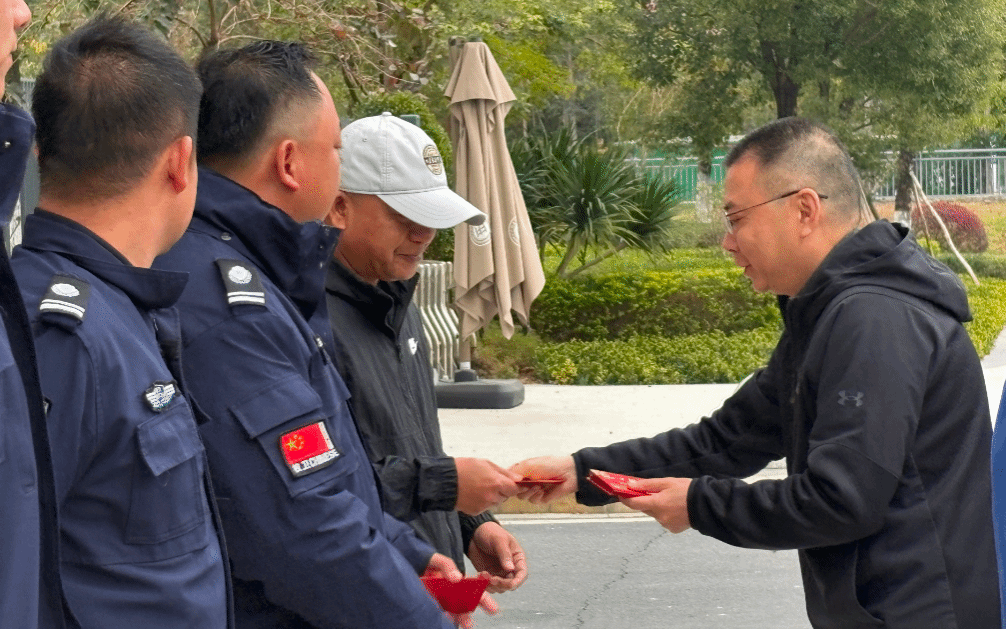随后,吴舸常务副校长将饱含着学校关怀与祝福的新年红包逐一发放到每位在岗值班人员手中。接过沉甸甸的红包,听着暖人心的祝福,在场的一线员工们脸上洋溢着幸福的笑容。大家纷纷表示,感谢学校领导的关心与挂念,大家一定不负重托,继续以高度的责任心和饱满的工作热情,站好岗、守好责,确保寒假和春节期间校园的安全、稳定与和谐,让全校师生度过一个欢乐祥和的新春佳节。