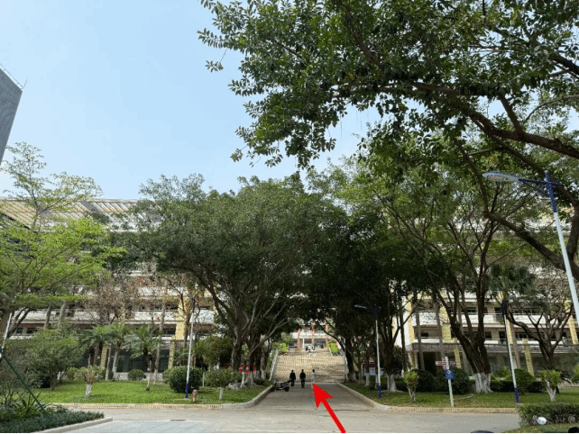 进校后直行,绕花坛环后上坡直行,在第10栋教学楼后沿着中间通道继续前行约40米,即可到达第3栋教学楼。