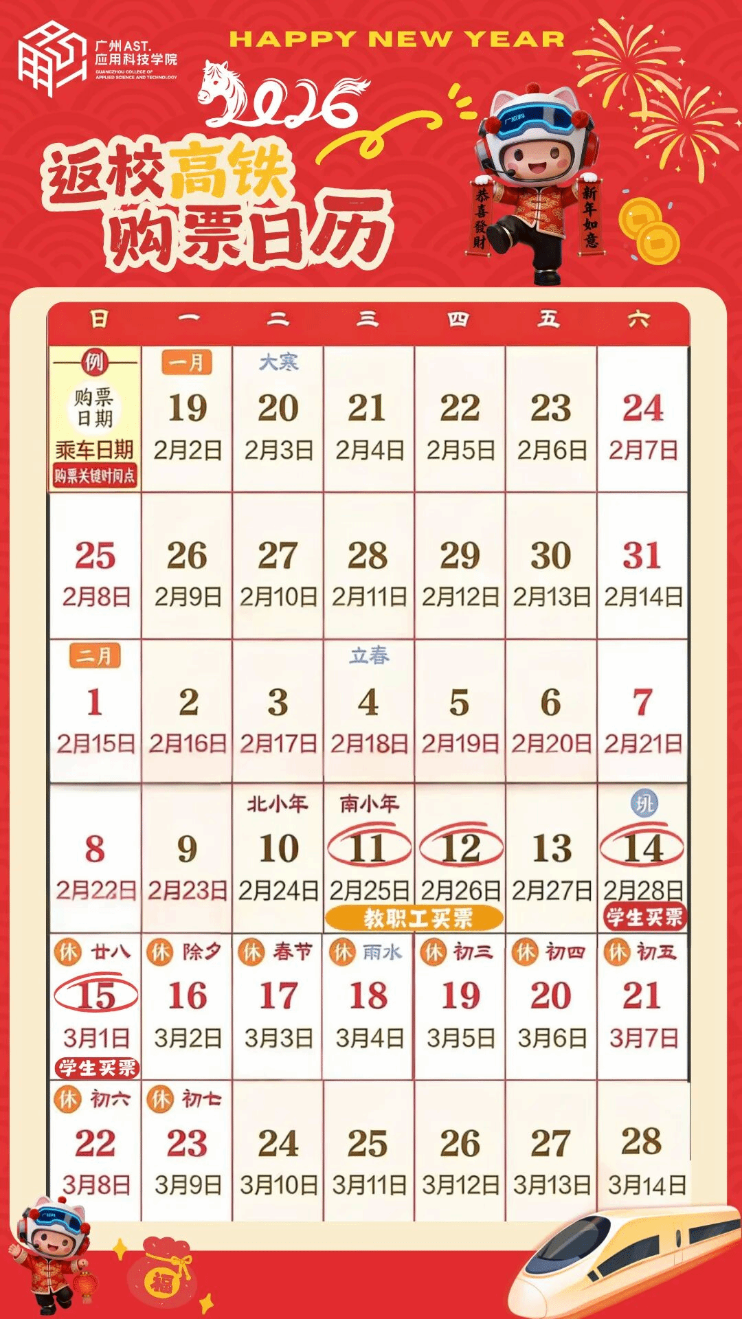 抢票必看!广应科寒假→新学期,返校高铁购票日历!