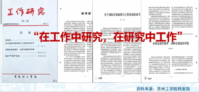 苏州工学院自2004年升本并定位为应用型办学后,在院校研究领域不断发展。2005年成立高等教育研究所,2006年创办《工作研究》。2008年成为中国高教学会院校研究分会常务理事单位,2011年创建全国部分理工类地方本科院校联盟以推动转型发展。2015年成立中国高教学会院校分会应用型院校研究中心,2020年与《江苏高教》编辑部共建高等教育研究协同创新中心,并共建应用型办学共性问题研讨机制以及东湖论坛、院校研究理工行等研讨活动。2022年,为了引导院校研究适应新发展,创办《高教参考》,与《江苏高教》编辑部共同采编,并在《江苏高教》编辑部微信公众号发布相关内容。2023年成为中国高教学会院校研究分会副理事长单位。